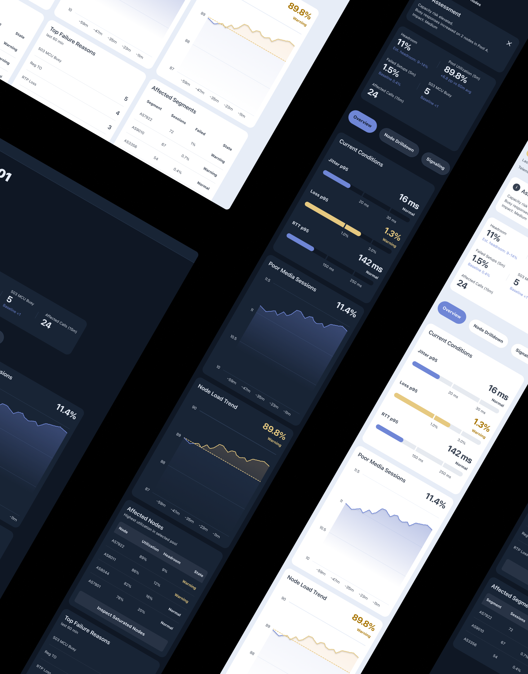 In many monitoring tools, information is scattered across multiple dashboards. Engineers must manually correlate signals such as utilization, packet loss, and setup failures.