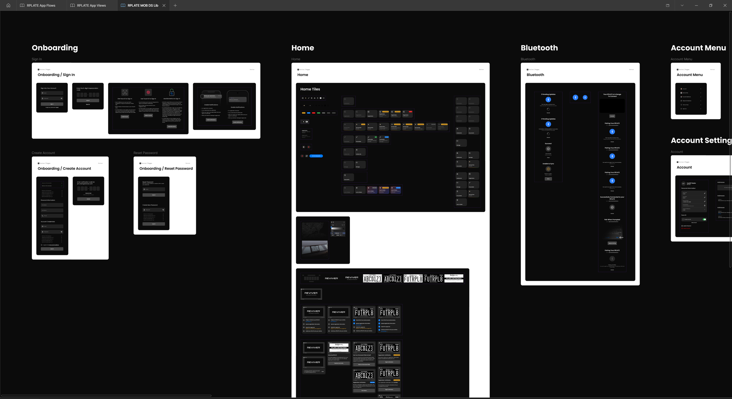 As part of my Figma workflow, I built and maintained a dedicated Design Library that centralized the product’s core elements, reusable components, and platform-specific patterns. It also included organized references for key app areas such as onboarding, home, Bluetooth, account, and plate management. This structure helped keep the system consistent, scalable, and easier to use across both design and product development.